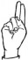 На ћирилици написано РУМЕНА БРАТИЧАНИН састоји се из 16 слова [?]. Исписано ћириличном једноручном азбуком за глувонеме: